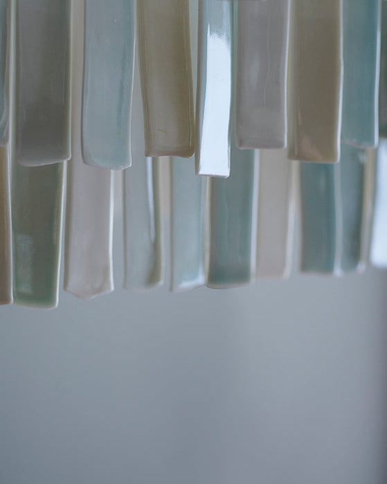 Aquarelles round 40cm chandelier - horsehair shade with hand glazed porcelain drops in celadonround 40cm: canopy - 12cm diam (5” diam)