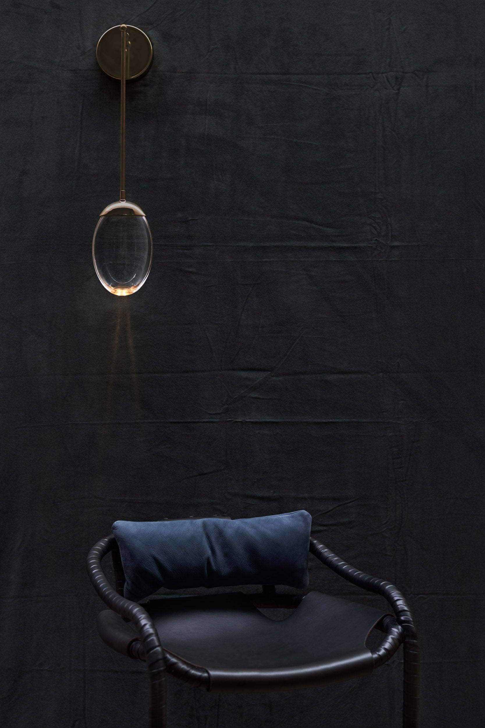 Celestial pebble, wall light with stem, antique brass - solid glass drop illuminated by LED, antique brass, blackened or satin nickel cap with matching back plate, chain or stem