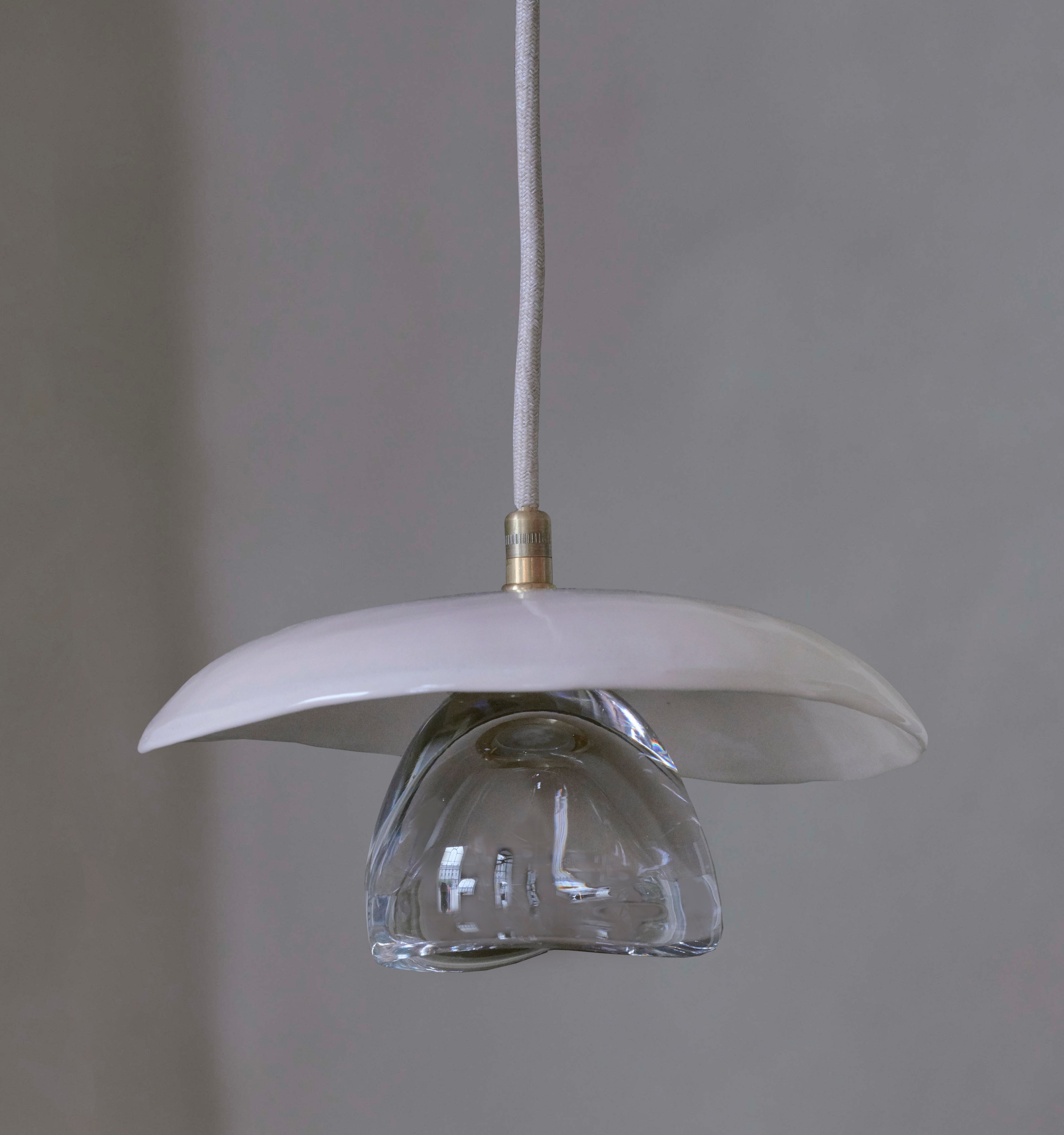 the ceramic shade and blown glass are created piece by piece and these hand formed