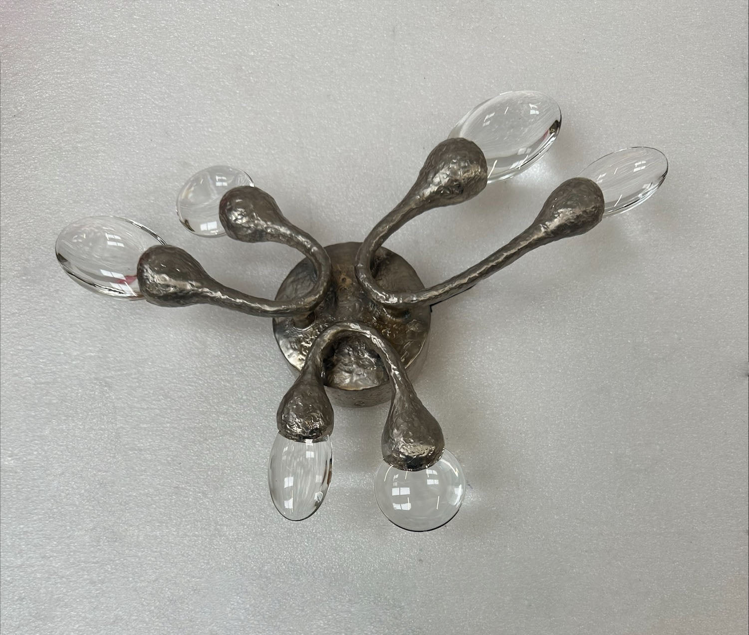 Damselfly wall light in satin nickel - solid cast bronze buds available in polished bronze or satin nickel finish, each housing glass
