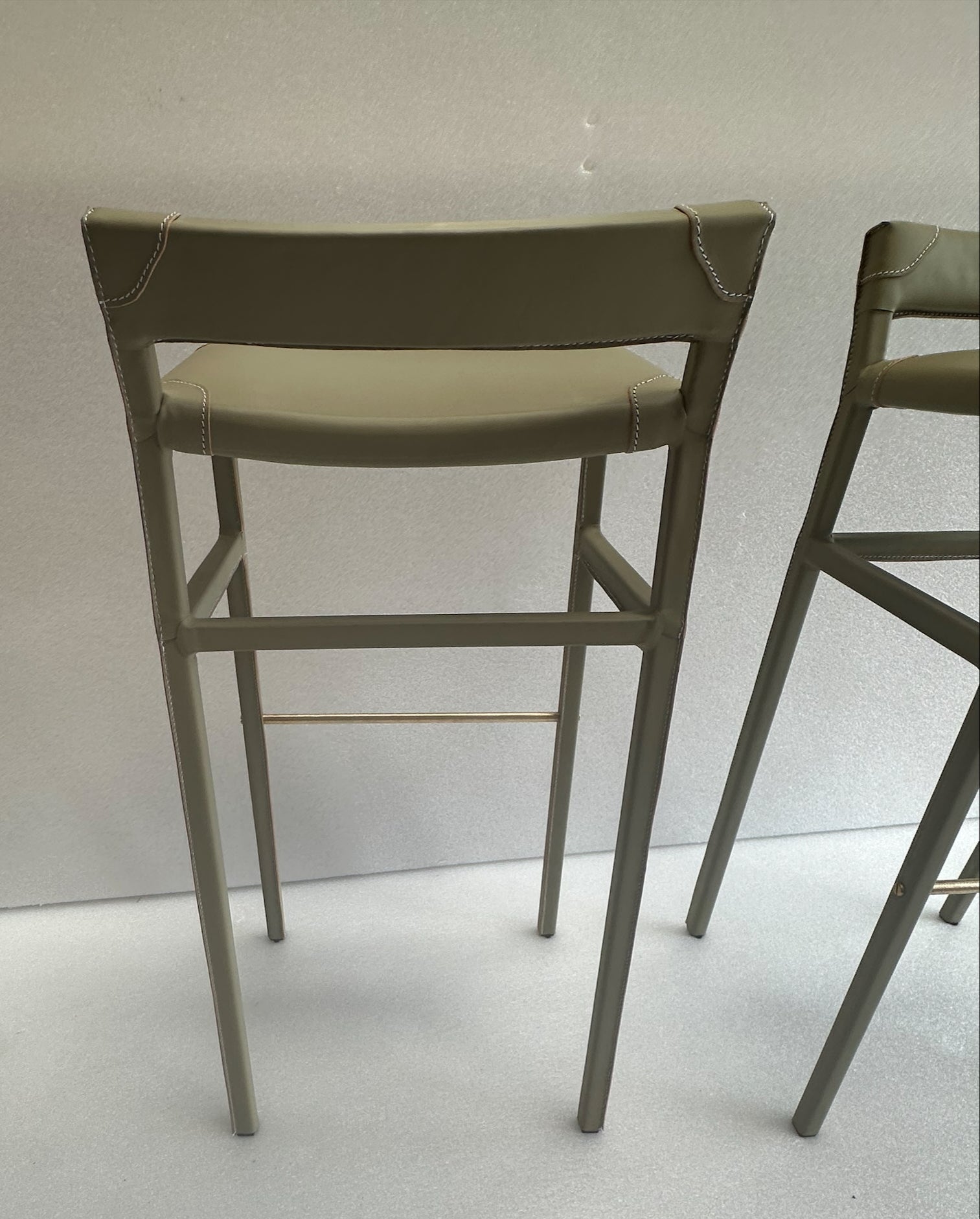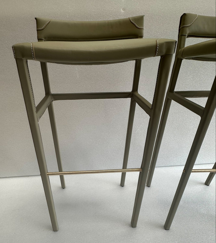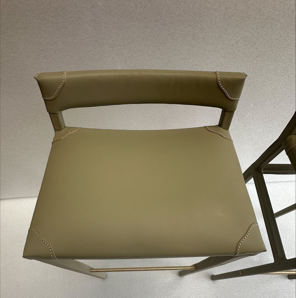 metal frame clad in the finest saddle leather with hand sewn pinched seams and scalloped corner details, brass footbar